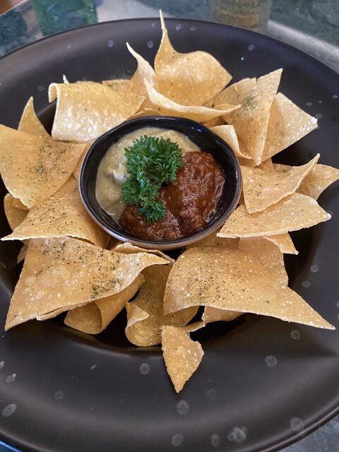 ランチを頼むとSnack1つプレゼント、と言われたのでNachosをオーダーしました。チーズとハラペーニョがゴテゴテと乗ったものを期待していましたが、なんとまあシンプル。