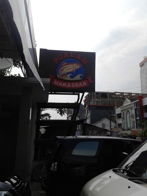 南スラウェシ州マッカーサルの中心地に位置する「Pualam」さん。魚の看板が目印です。