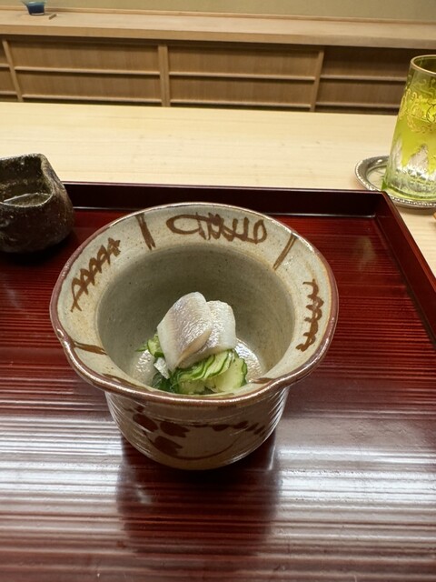 夏と秋を感じられるお皿たちでした。魯山人の箸置きなど、器にも拘りがあり目でも楽しめました。