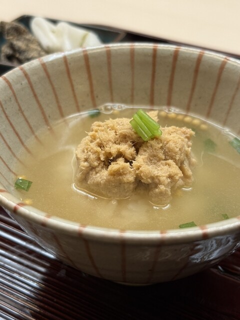 加能蟹のしんじょうは、一瞬淡く感じるほど繊細ながら、後から旨味が大きく広がり、蟹をほぐしてお出汁と一体化させることで完成する一品でした。