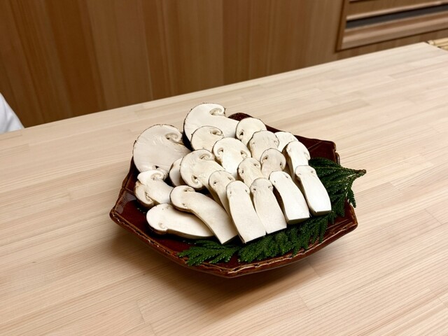地物能登の昼取れ松茸が本日の主役〜白く艶やかな肌に店に充満する松茸独...