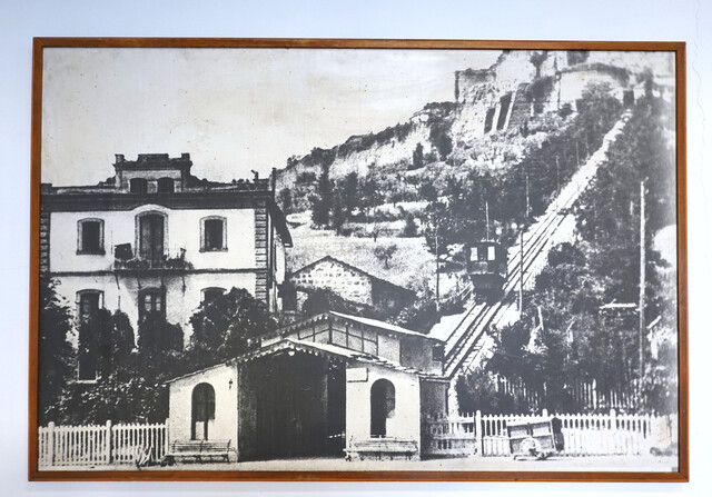 なスタートとなりました。駅を出ると噴水があってその奥にフニコラー