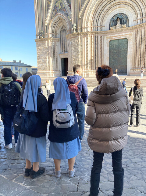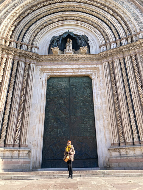 サードの青銅の扉の前で記念撮影をする観光客多数〜シスターの姿が