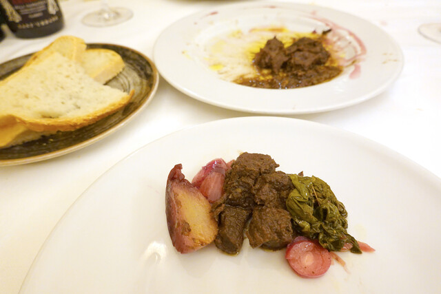 ーフ以外に猪だけでなく鳩の赤ワイン煮(€19)があって本格的!お