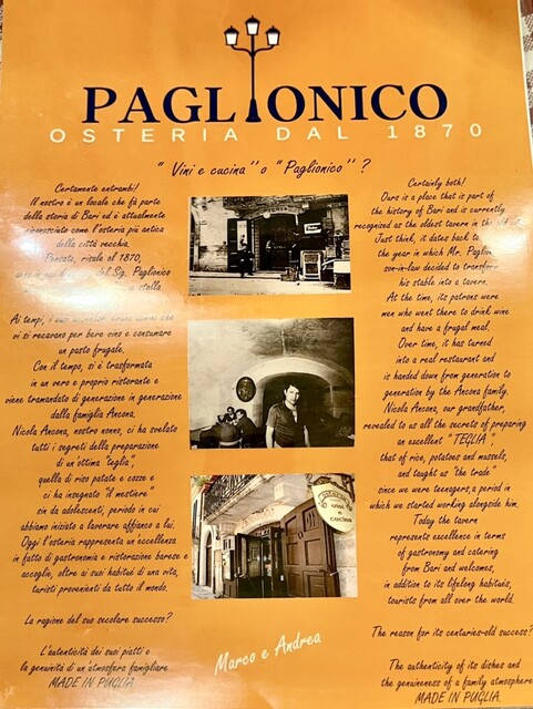 ということで、バーリで最も古いというオステリアに来ました。