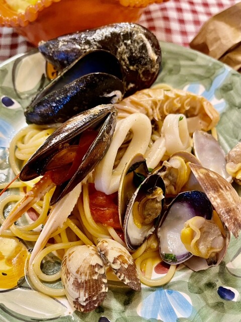 私のプリミはspaghetti ai flutta di mare 王道です