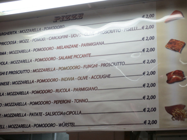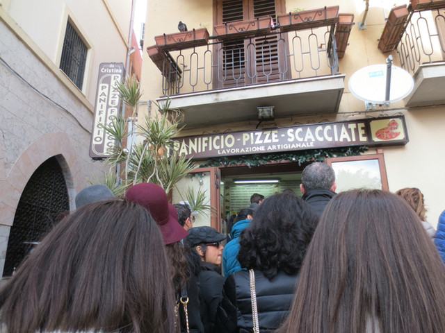 アランチーニ、ピザ、フォカッチャのお店のようで長い行列ができています。上質なマダムまでもが並んでるのを見ると、これは本物ではという気がして、こちらのお店を選択。Gambero RossoのStreet Foodにも載っていませんでした。