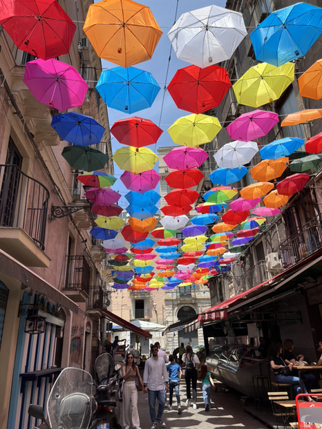 祝日に、現地ローカルとカターニアの中心街へランチに出かけた。