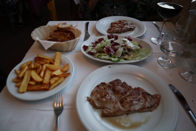 食事の方は、コースとグラスワインを頂きましたが、旧来のイタリアによくある量の多さ。(写真は2人分)