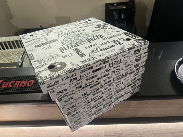 本日は1日中海で遊んだので疲れ過ぎて夜ご飯を作るのを諦め、ピッツェリアでピッツァを持ち帰りする事にした。
