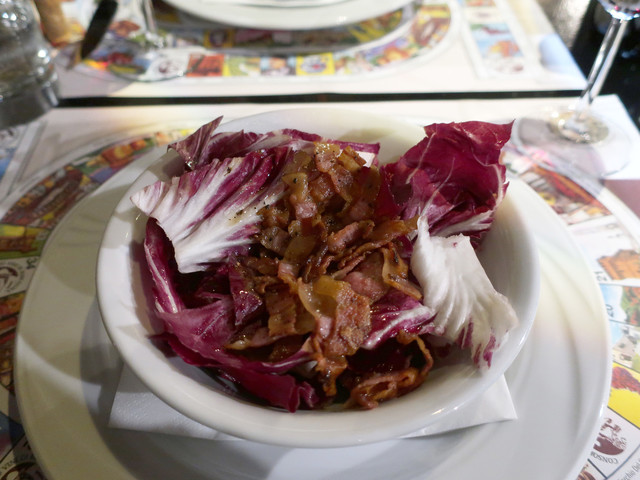 はラディッキオにクリスピー・ベーコンを載せただけのシンプル
