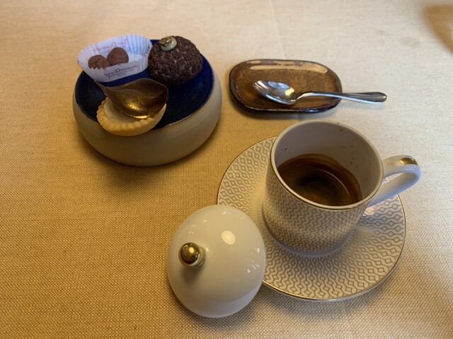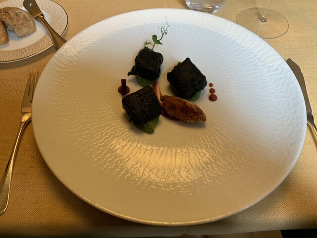 高速列車でボローニャ経由、1時間ほどでイモラ駅、徒歩10分ほどで2つ星当店到着、教会前の庭が借景、店内インテリアオールドスタイル、オーナー風体からしていかにもです。アラカルト可能なので、アンティパスタはタラの黒天ぷらブロッコリーソース、ファーストはクラシックタリアテッレ、メインは希少豚Mora Romagnolaにアーティチョーク。トスカーナ色強いお料理で満足、特に皮・骨付豚はうんまい(๑˃̵ᴗ˂̵) お隣のイモラ博物館でアイルトン・セナ展、あさってより、残念。