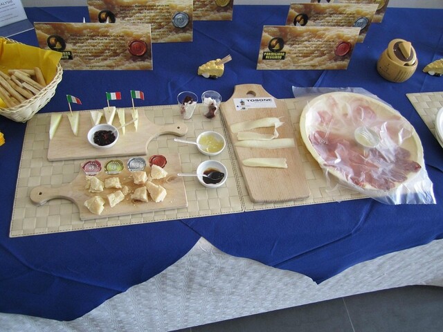 ひと通り見終えた後は、お待ちかねのテースティング。パルミジャーノも18,24,45,Vachhe Rosse24他、数種類フロマジィオにプロシュートとランブルスコの赤スパークリングまで付いてくる大盤振る舞い。
