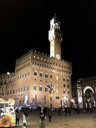 ちょっと足を延ばして、シニョーリア広場のベッキオ宮殿のライトアップも撮って...