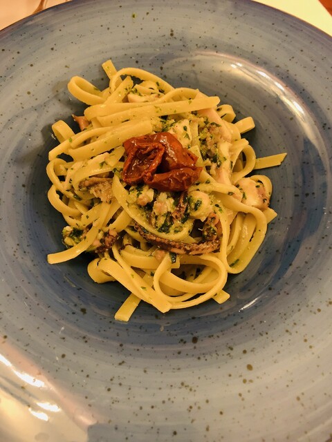 ■LinguinewithhomemadePesto,CherryTomatoesandbabyOctopus(€12.00≒1,440円)