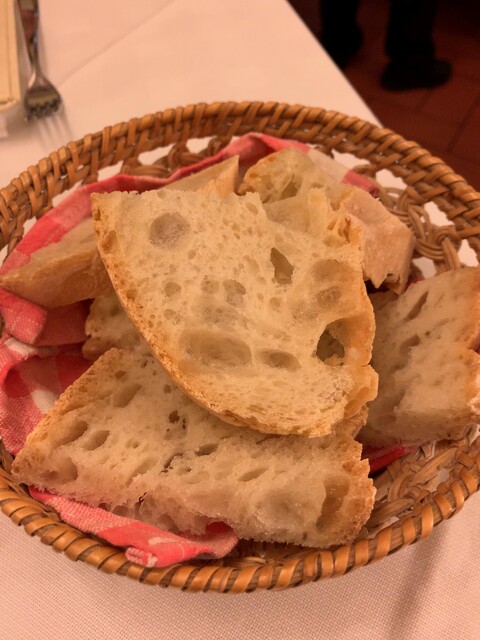 テーブルに何気なく置かれたオリーブオイルをパンに付けながら食べますが、やはり劇的にオリーブオイルが美味しい。