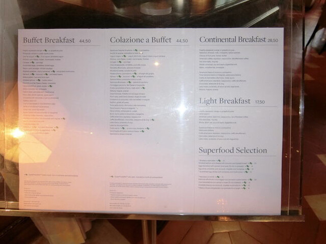 朝食はブッフェ、コンチネンタル、ライトミールと3種類の用意があるが、ブッフェに至っては物価の高いフィレンツェでも安宿に泊まれるし、ランチだとお釣りがくるが、素晴らしい取り揃えに敬服。