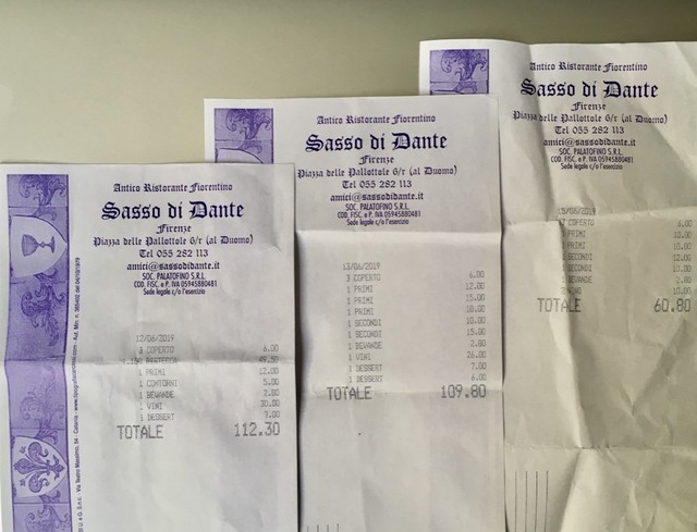 四日間の滞在中、ホテルから歩いて5分ほどの距離にある「Sasso di Dante」で三回も食事をしました。Duomo (Cattedrale di Santa Maria del Fiore)の南側に面したこの店への訪問は23年振りですが、外観は変わっていません。年配のCameriere へ再訪であることを告げると、「以前のオーナーは引退し、現在は別の経営者が生業を引き継ぎました。」とのこと。丁寧に和かに応対してくれたので孫娘が「Ferdinandoって優しいね。」と、すっかり気に入ってしまいました。