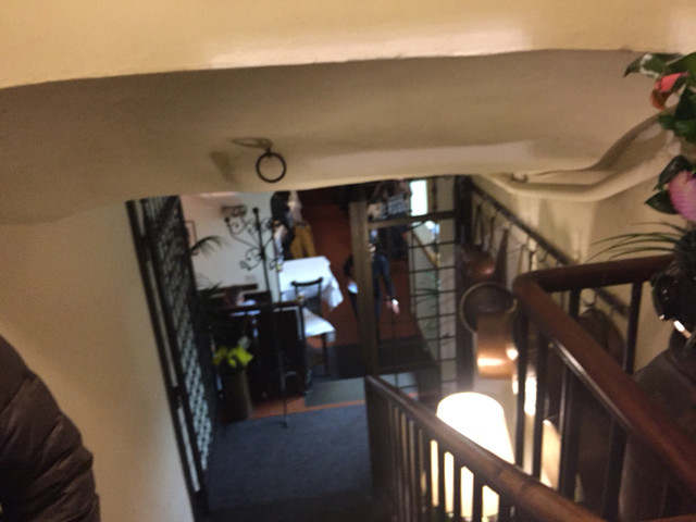半地下の店内はお客さんで超満員(^^;)とても入れるような雰囲気じゃない(^^;)実際我々の前で飛び込みで入った数組は断られていました。