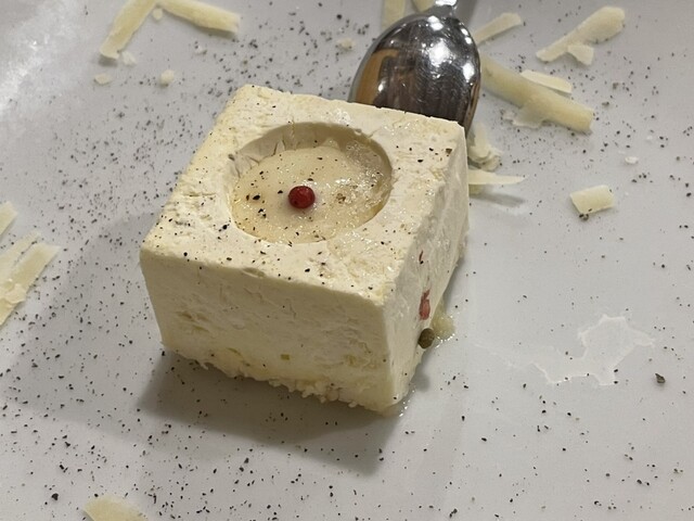 アンティパスト。タレッジォのフォンドゥータとポレンタ。タルトゥーフォたっぷりです。これ、最高に美味しい。タレッジォの臭みがフォンドゥータにすると、こんな感じになるのかと。