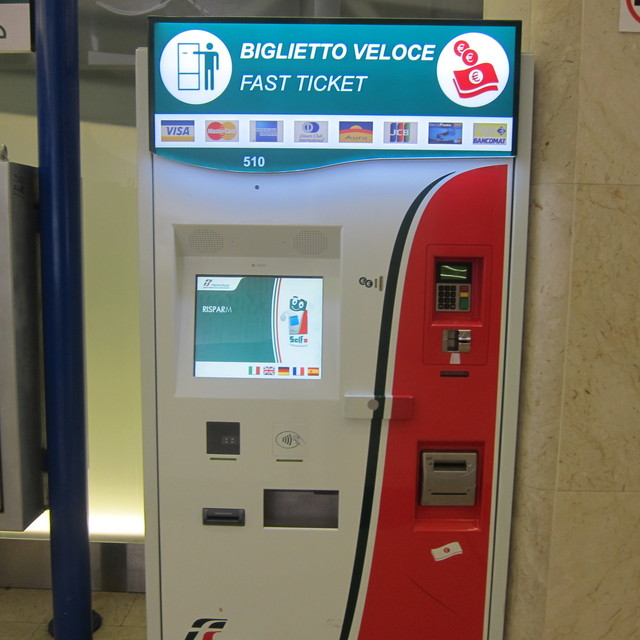 ミラノ中央駅にある切符の自販機。指定席券も買えます。