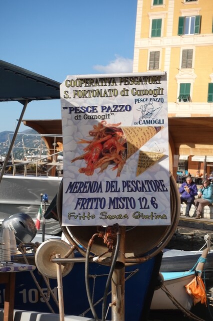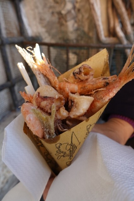 カモーリで追加ランチ。12ユーロのフリット。船の上で販売してます。こちらもすごい行列。