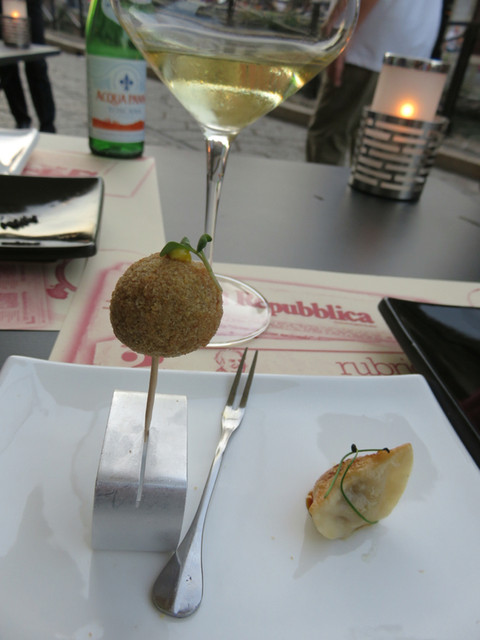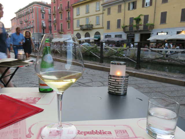 イタリア旅行の初日夜は、シルミオーネからミラノに戻り、ナヴィーリオ運河近くのレストランでディナー。ここもガンベロロッソ掲載店です。