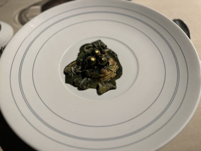 アミューズが有無を言わさず提供され、ひとしきりしてからメニューを選ぶという珍しいスタイル。