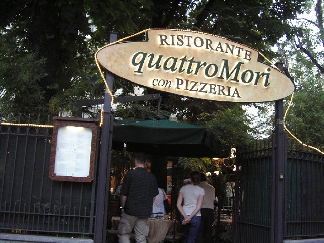 ホテルの近くの雰囲気のいいリストランテ Ristorante Quattro Mori  で遅めの夕食・・・8時を過ぎたが日はまだ沈んではいない・・・ミラノは夜長である!!