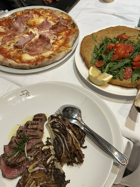 メインもミラノ風カツレツに牛肉のタリアータ、ミディアム加減が絶妙でナイス。