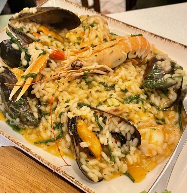 会議でミラノへ。会場ホテルそばで金曜の夜7人で予約となるとけっこう限られました。イタリアのレストラン予約サイトでは高評価ではなかったので期待薄で予約。