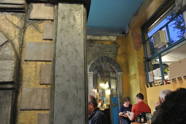 飲み物は、ビール。お客さんの8割がビール、1割1割がワインとソフトドリンクと言った感じで、ビールもジョッキに1,2杯。われわれも、ジョッキ1杯と大瓶を二人で1本。それで十分でした。とにかく、ピザはでかくて、チョーウマ。今回3,4軒いくつもりで、ここが一番期待度が大きかっただけに、激満足でありました。