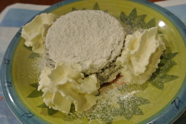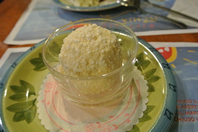 ドルチェ:イタリア語が分からないので指さしオーダー。ひとつがジェラートと生クリーム。一つが硬い生地の焼きケーキ。