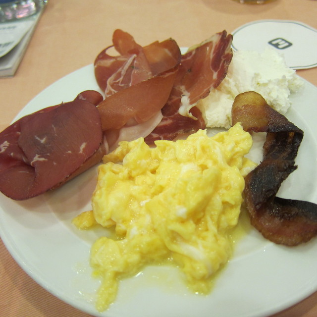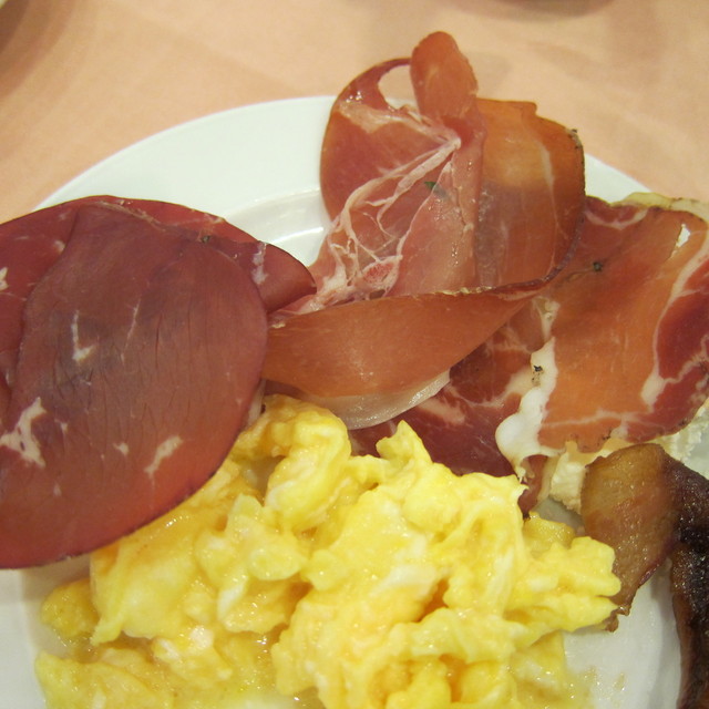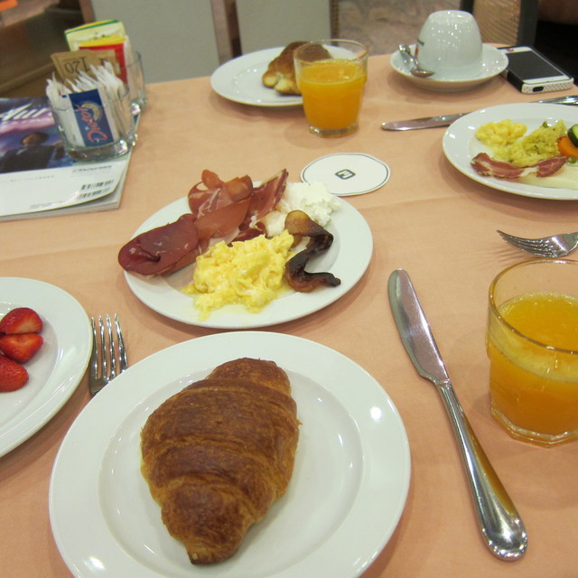 この値段でびっくりしたのが朝食の充実です。パリの同金額のホテルとは大違いの、イタリアンくいしんぼう向けホテルじゃん、と言ったところで。