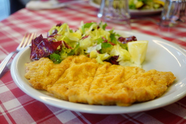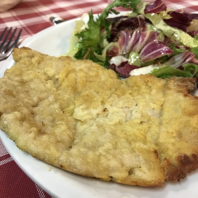 ミラノ風カツレツは叩き潰した子牛の肉らしい...