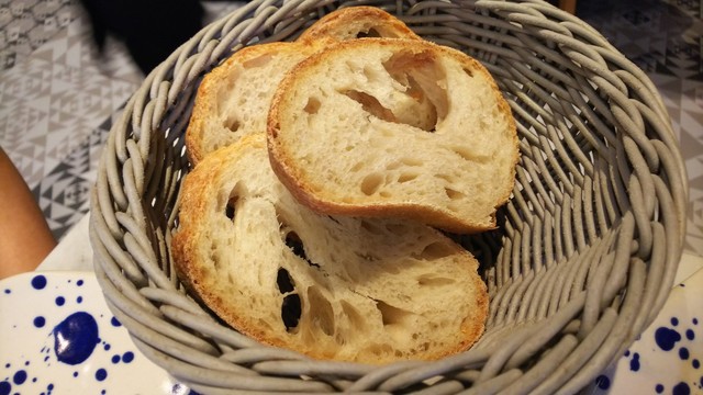 とりあえずお通し代わりのバケットを食べつつ、ワインを頼んでオーダー決め!