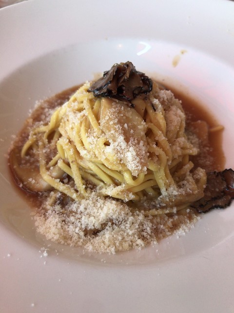 パスタは、ポルチーニとトリュフの香るタリオリー二