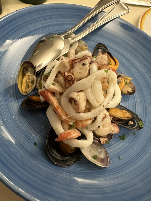 最初の魚介類の一品から海を感じ2品目の私がオーダーをし...