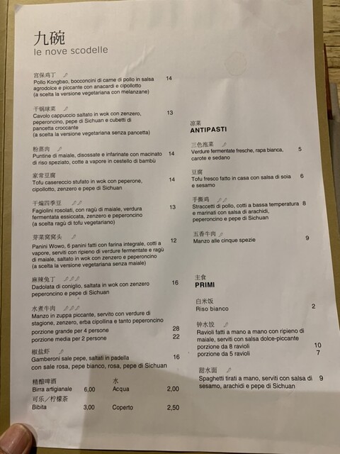 ミラノ環状東側のビブグルマン四川料理店、22時ですが20卓ほどのテーブルほぼ満席、お値段鍋以外は1桁€代でボリュームたっぷり、お味、ご飯も欧州にしてはいい方です。メニューには餃子はラビオリ、うどんはスパゲッティ。パンなしですが、コペルト2.5€、聞くとサービス料とのこと、帰路地下鉄・バス・トラム全ストライキ、1時間歩いて帰りました、ミラノ中央駅では観光客途方にくれてました( ̄▽ ̄;)
