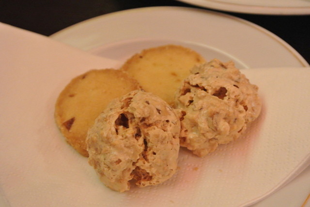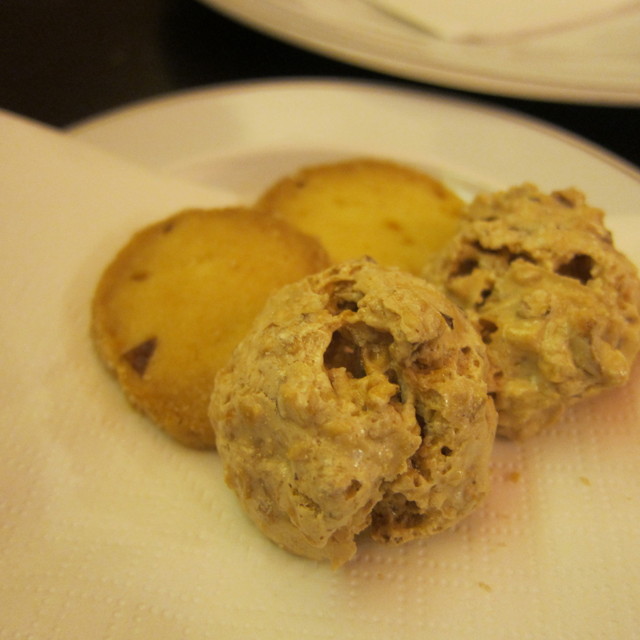カプチーノとワタクシのイングリッシュブレックファーストティをオーダー。各5€。飲み物と一緒にメレンゲとクッキーの小菓子が。食べもののメニューでパニーノ(サンドイッチ)を見つけました。8.5€と12€がありますが、違いが分かりません。違いを訊くと、12€は熟成したプロシュートを使っている、とのことでしたので、じゃあそっちで。