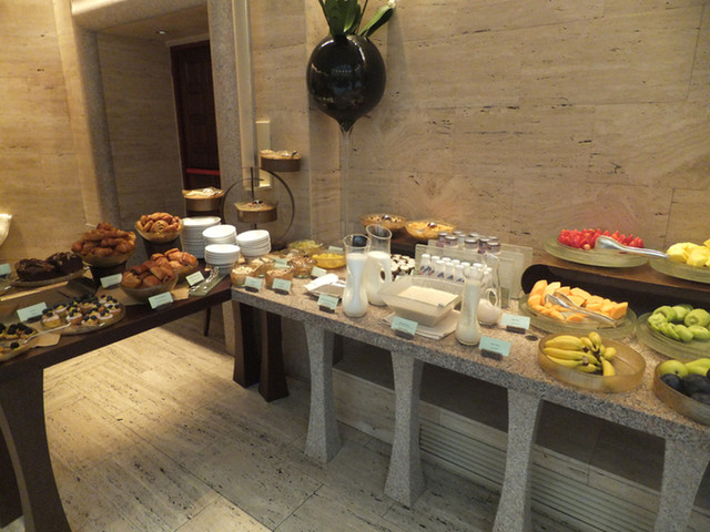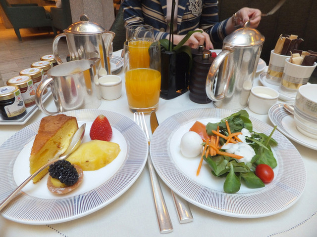 朝食のビュッフェです。見た目美しいですが、いかにも淡泊でヘルシーなものばかりが並んでいます。ここのカッペリ(ケッパー)は美味しかったな。テーブルにつくとコーヒーとフレッシュジュースがサーブされます。今回の宿泊プランには朝食代が含まれていたのですが、そういう場合は席に着く前にブレックファーストがインクルードされている旨を伝えてルームナンバーを言って朝食バフェのチェックインを済ませてください。そうでないとメニューを持ってくるので一手間かかります。