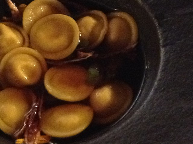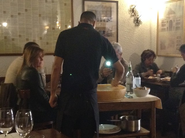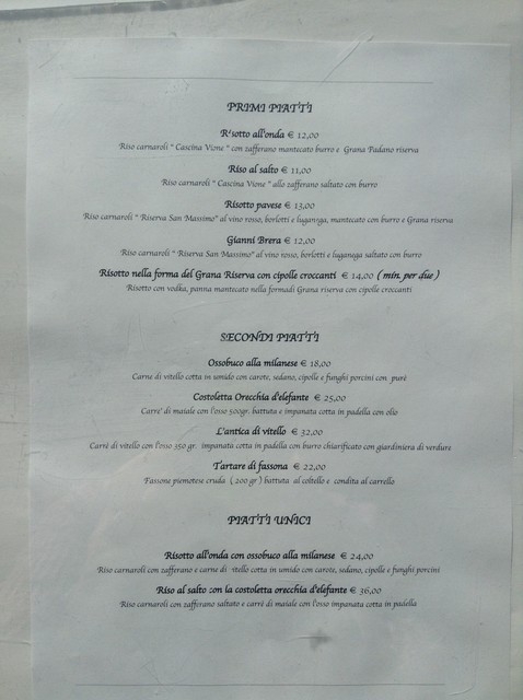 オッソブーコ(サフランリゾッド付き)と、お勧めと云われるスープパスタを注文。