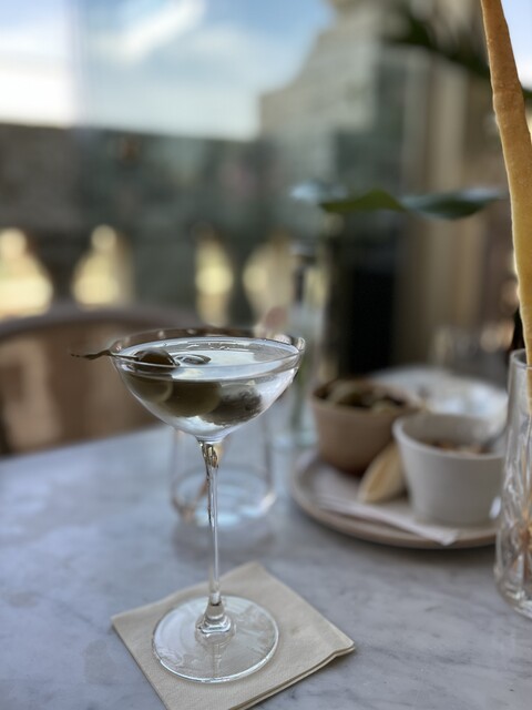 「ヴェルモット少なめ、オリーブはなし。レモンピールは絞ってグラスに入れちゃってください」が、お好きなMSSBHNSさんの飲み方もスッキリとおいしいのですが、私は、映画「麗しのサブリナ」のシーンにあるララビー家の総帥(Humphrey Bogart) の父親役Walter Hampden が、小瓶に入ったオリーブの実が取れず、逆にその瓶にジンを注いで一気に飲み干すシーンが好きです。ましてイタリアですから、Cameriere から「ジンのお好みは何でしょうか? オリーブ若しくはレモンどちらになさいますか?」と訊かれた時、「Bombay Sapphire, Martini, Stirred, Not shaken. Olive」と、ジェームス・ボンドとは真逆のマティーニを頼みました。イタリアの爽やかな空気の中で飲むには、このぐらいの柔らかい味わいが似合っています。素晴らしい組み立てでした。参考:https://front-row.jp/_ct/17355214