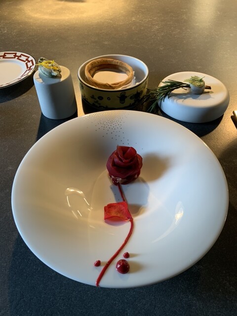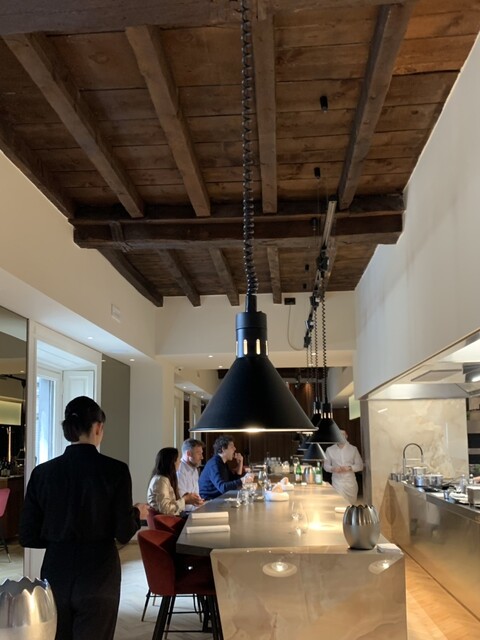 ピアッツァ・ドゥーモの真ん前のホテル内2つ星レストランでランチ、欧州では珍しくオールカウンターです。メニューはテイスティングとアラカルト。ドルチェは食べたくないので、アラカルト3点とワインペアリング。アミューズはイマイチでしたが、その後はパフォーマンス含めまずまず。空いてる日のようで、ランチのお客さんは9人、スタッフは12人。なおメインのラムは2皿、お腹パンパン(//∇//)