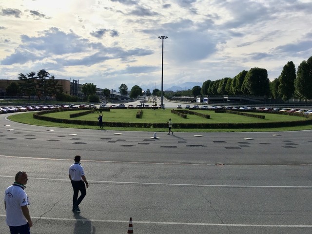 それは、ナント!Mirafiori 工場内にある完成車の走行テスト用サーキットを参加者全員が走るというものでした。ついては免責契約書に身分証明の番号の記入とサインが必要でした。