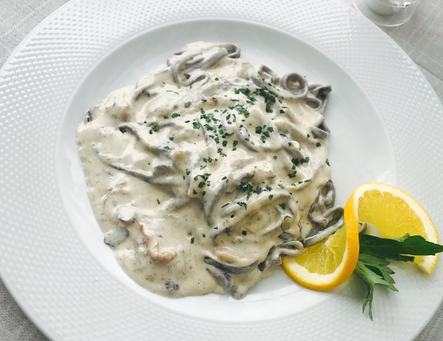 ポルチーニを練り込んだ黒いタリアテッレ。クリームソースは芳醇なキノコの香り。印象に残りました。