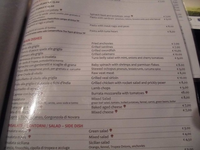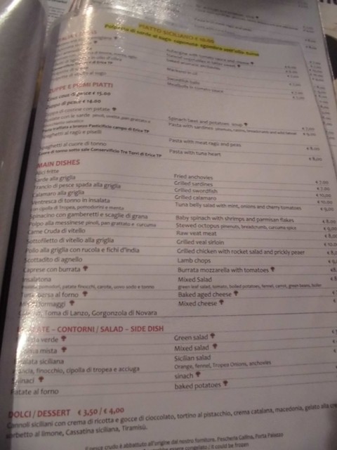 メニューは、イタリア語表記と英語表記が並んでいます。