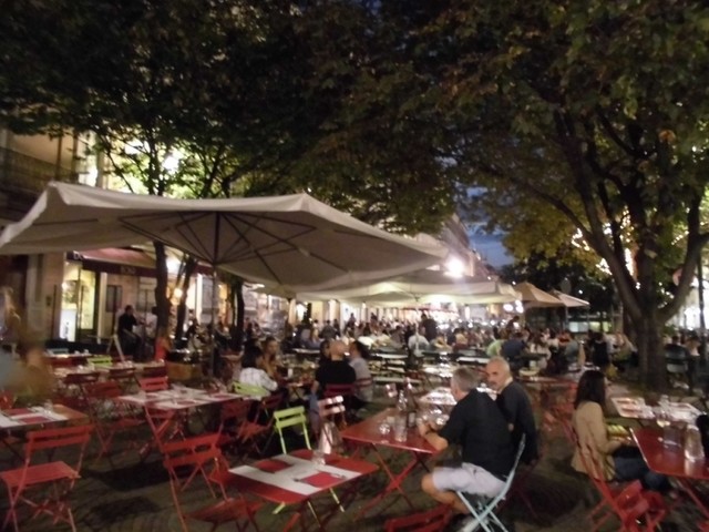 広場というか、歩道上にオープンテラスが広がっています。