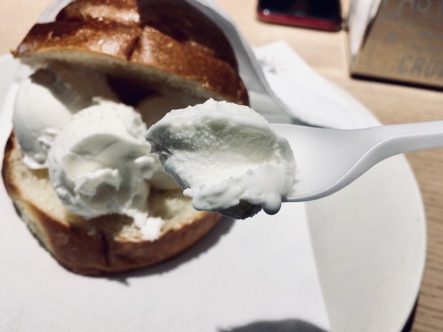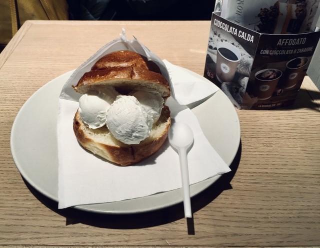 ブリオッシュ・コン・ジェラート (Brioche con gelato) をピエモンテ州 Pineroloで食べる