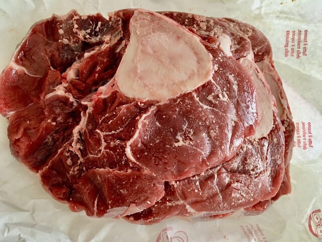 これはオッソブーコ(Ossobuco)用スネ肉(骨の髄まで付いている)